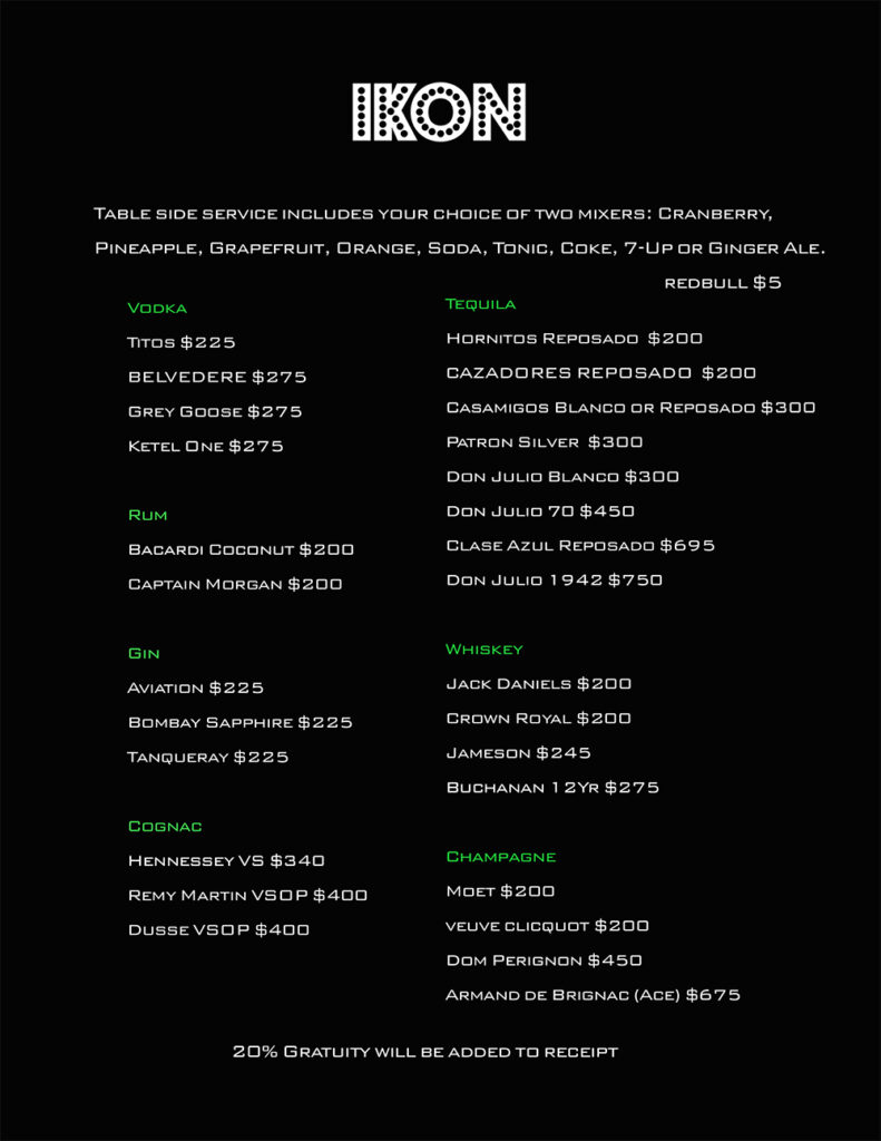 VIP Bottle Service Details
